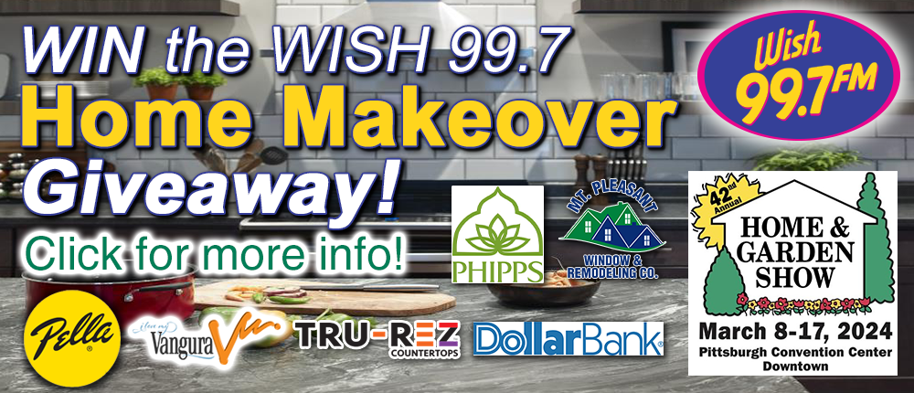 Enter for your chance to win the 2024 WISH 99.7 Home Makeover Grand Prize Giveaway, presented by Vangura featuring Tru-Rez, Dollar Bank, and Phipps Conservatory & Botanical Gardens!