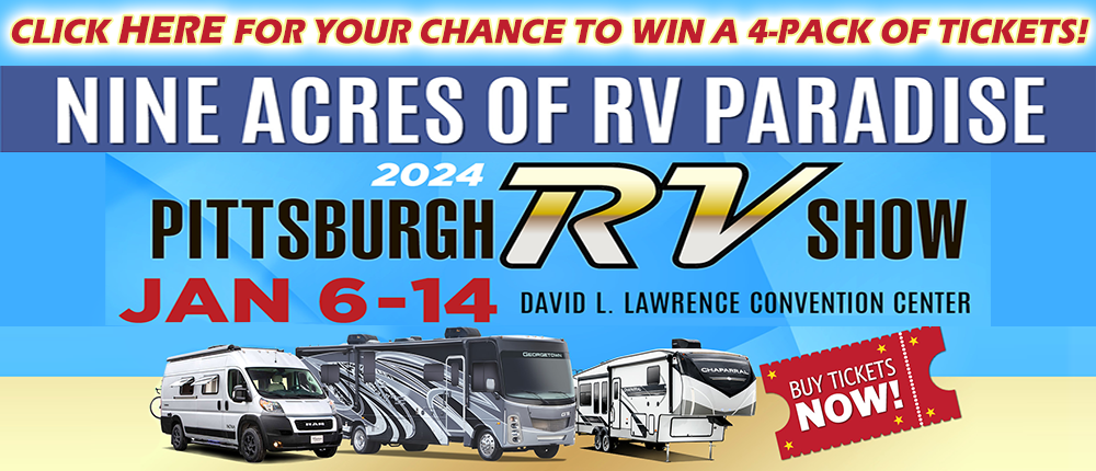 It’s our Happy Camper Ticket Giveaway! Enter to win a 4-pack of tickets to the Pittsburgh RV Show, coming to the David L. Lawrence Convention Center January 6 – 14.