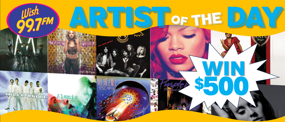 Today’s Hits & Yesterday’s Favorites – and now a chance to win $500 with the WISH 99.7 ARTIST OF THE DAY Contest!